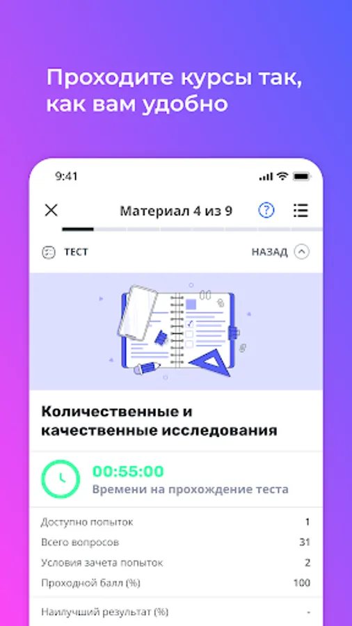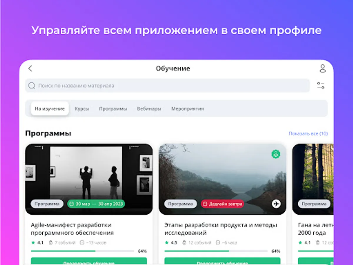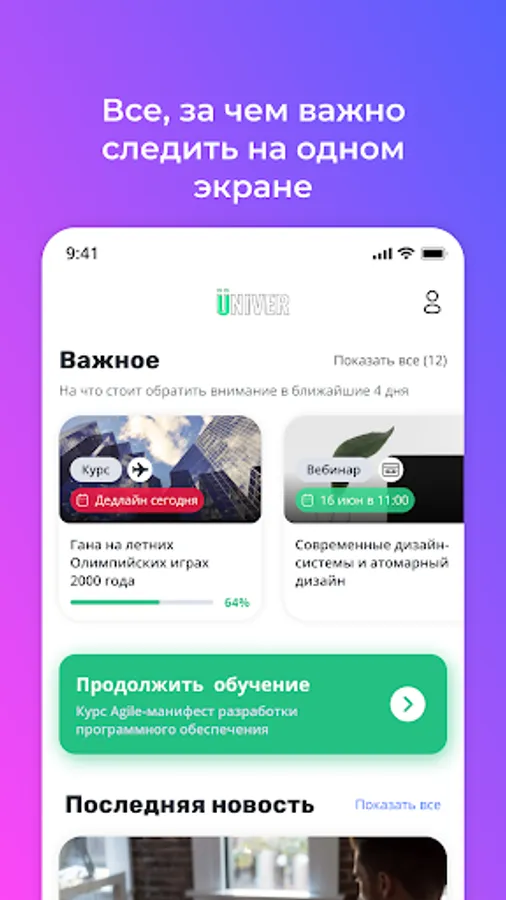 In the application, you can listen to lectures, watch webinars, complete assignments and receive feedback from teachers. And all this in one place.