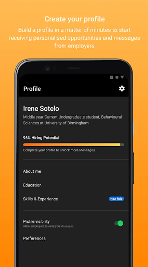 Once you’re up and running, you’ll receive direct invites from employers to apply for jobs, attend assessment centres, be invited to interview and more - all based directly on your experiences, personal attributes and work preferences.