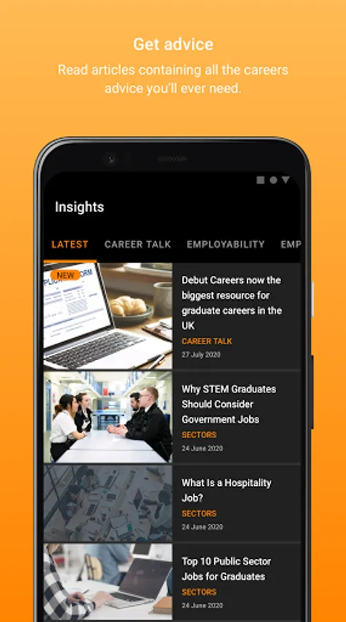 Download Debut to gain access to carefully curated content from some of the top graduate employers in the UK, including videos, interviews and articles from real-life graduates and graduate recruiters - all completely free.