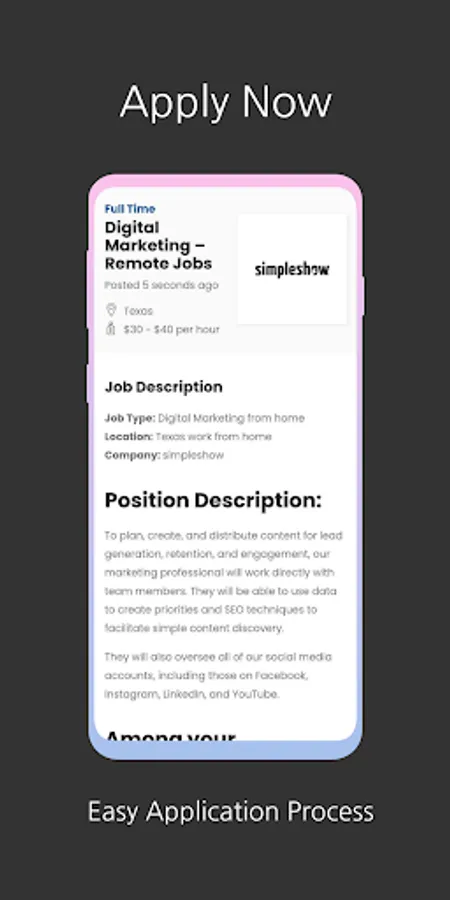 Whether you're a stay-at-home parent, a student, or just looking for a flexible job, our app has something for everyone. Start your search today and take the first step towards finding a work at home job.
