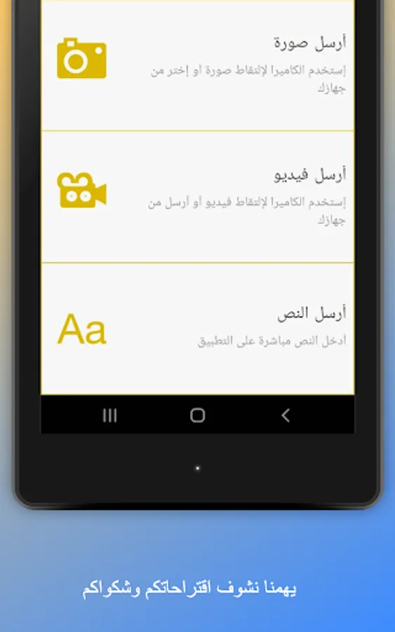 You can share your opinion, suggestions, or even your complaint, and we can communicate with you to solve any problem, God willing