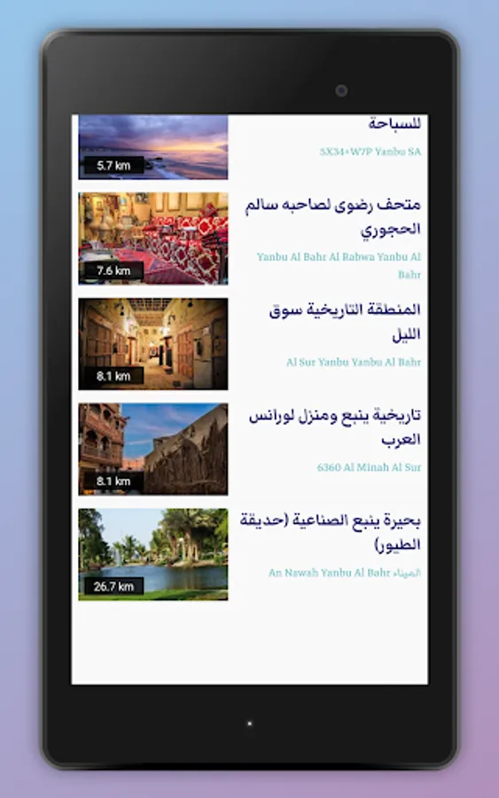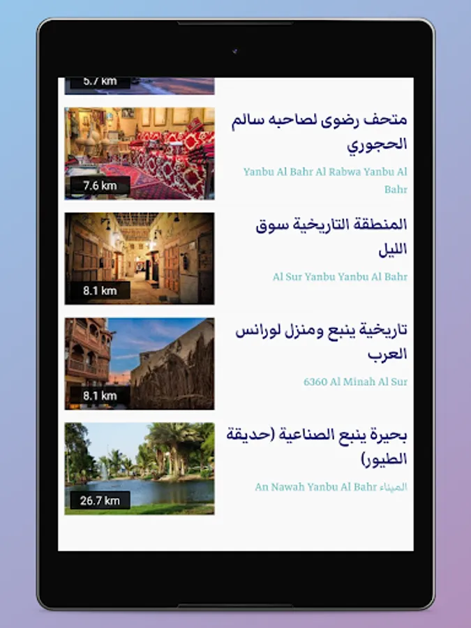 The local guide to Yanbu contains a group of the most important and prominent restaurants and cafes, and also contains a section in which we provide advice to users of the application on the most important and prominent tourist places in Yanbu, including beautiful beaches, important events, historical and archaeological places, and much more.