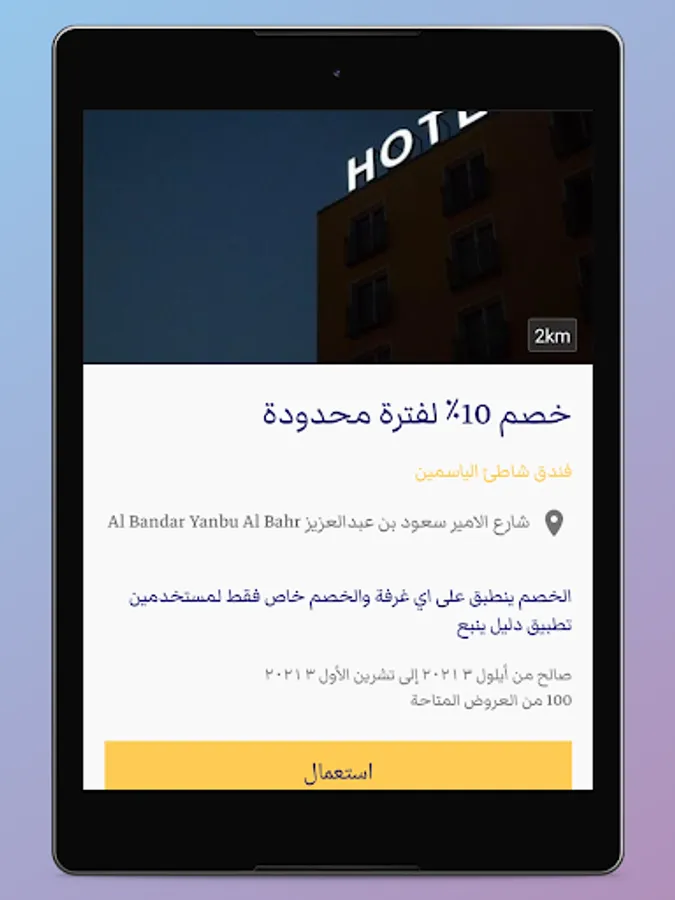 The Yanbu Guide application also provides discount coupons for many commercial activities in Yanbu, including restaurants, cafes, and others
