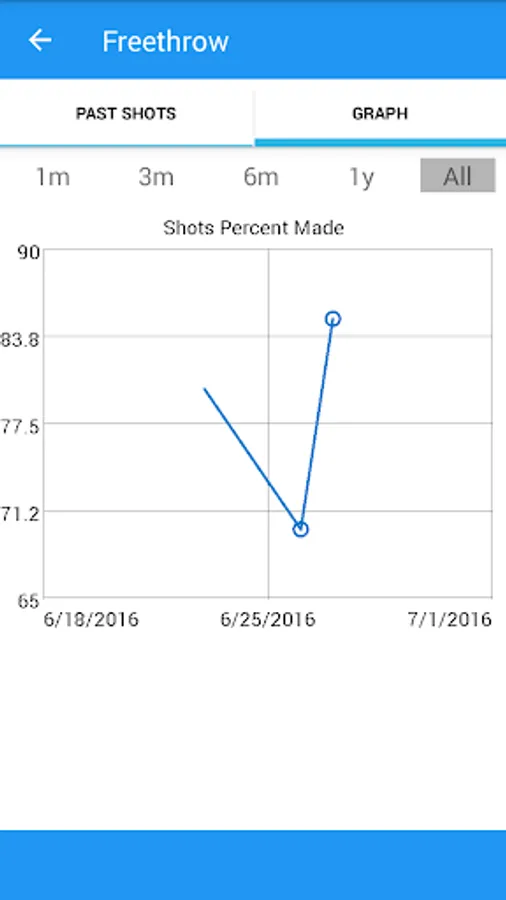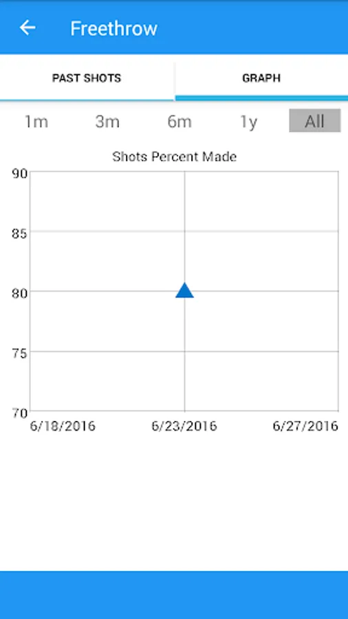 Track your basketball shots from different shot locations. Record your attempts and misses, and use the graph to view progress overtime.