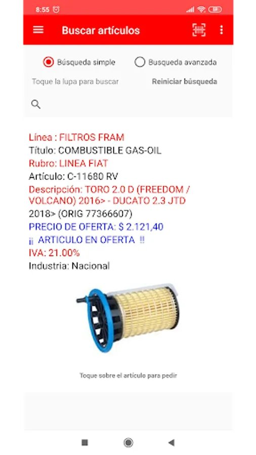 Exclusive application for customers of Carlos Vazquez S.A., which allows you to consult the price lists, search for items and generate orders from your cell phone.
