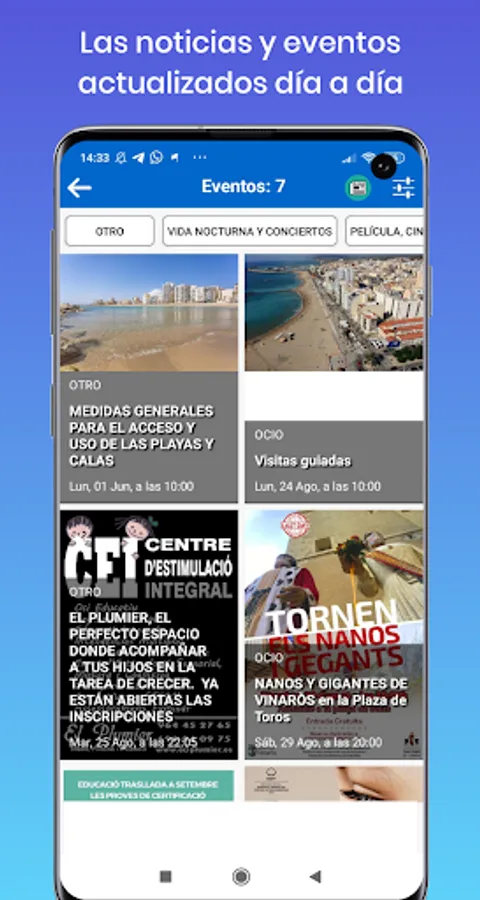 * All EVENTS at the time of the city organized by categories and at the time you wish