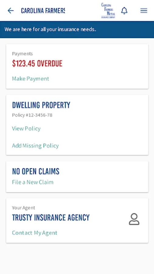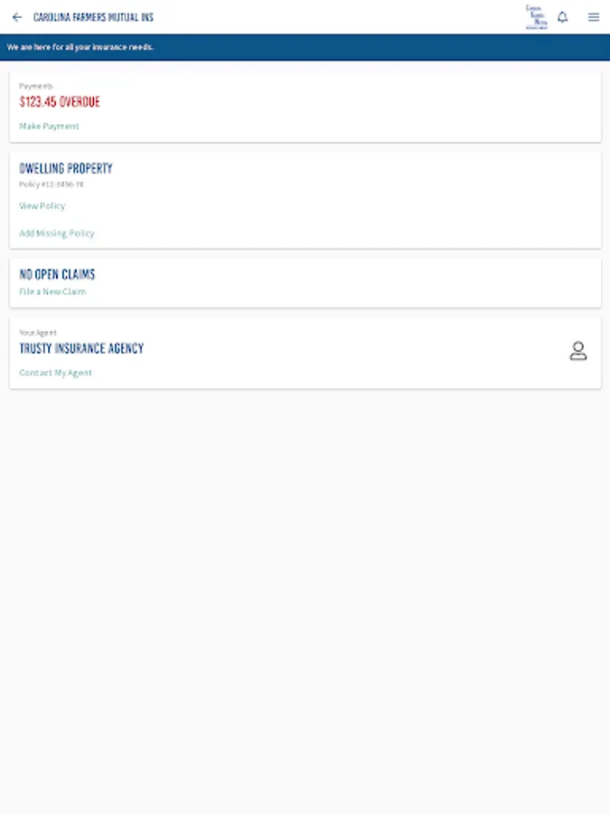 * Ability to upload photos, contact your agent or the Carolina Farmers Mutual