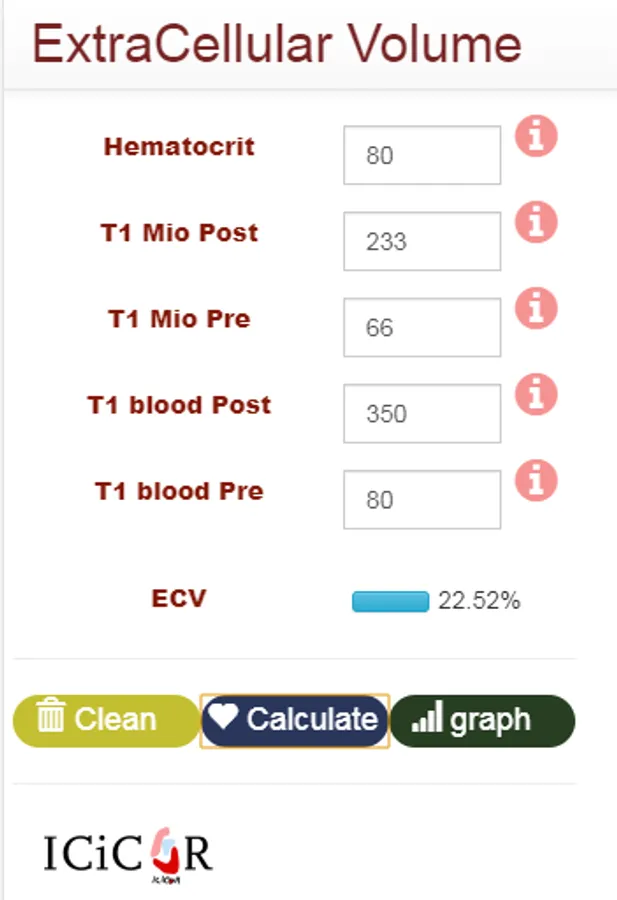 App to calculate extracellular volume using cardiac resonance parameters and T1 mapping sequences