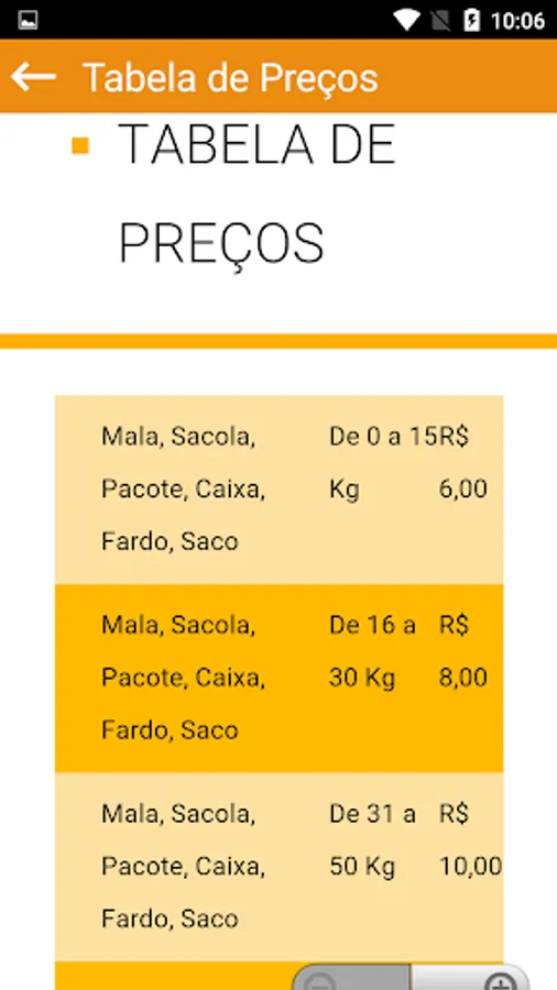 APP informs sites that offers this type of service and price according to the table of weights and sizes of luggage.