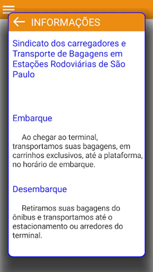Upon arriving in Bus Terminals of Tietê, Barra Funda, Jabalpur and Osasco, you can count on the service of LUGGAGE BOOTS.
