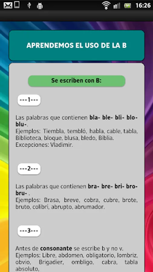Learning to read in Spanish is the ideal application for elementary school children to learn to read in Spanish, to know the alphabet and to learn grammar easily and in a fun way in their education.