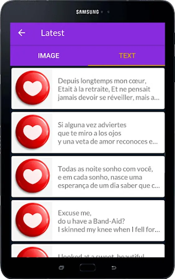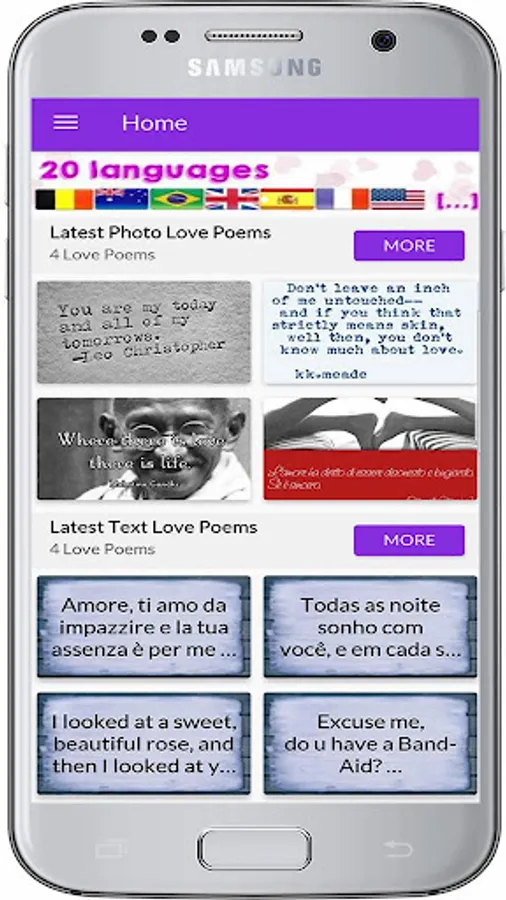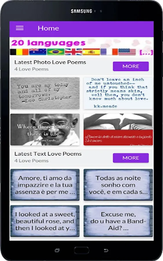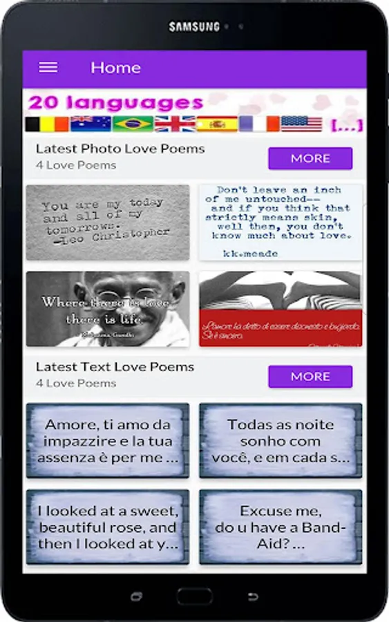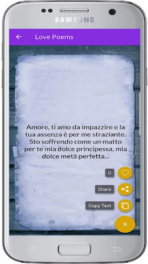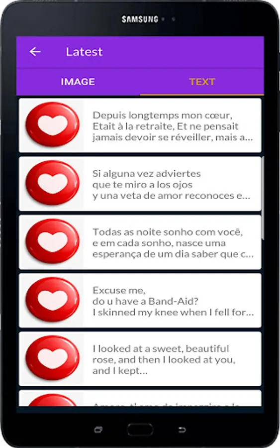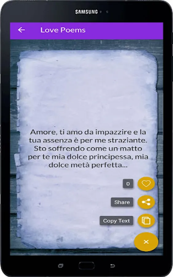With the application poems of love you will have access to infinity of poems in all the most spoken languages, since for example, poems of love in English, Portuguese, Italian, Frenchman, Spanish and Russian.