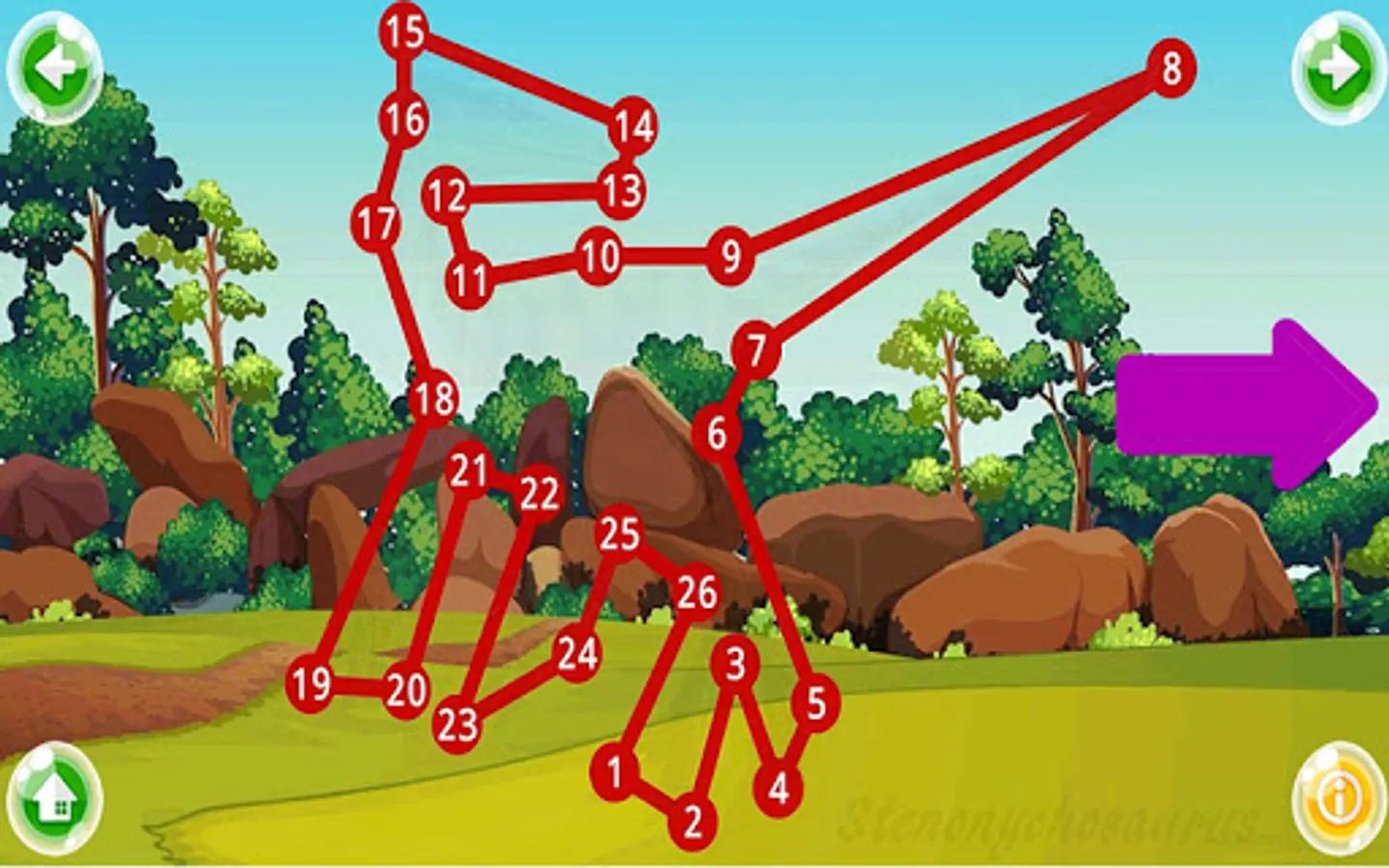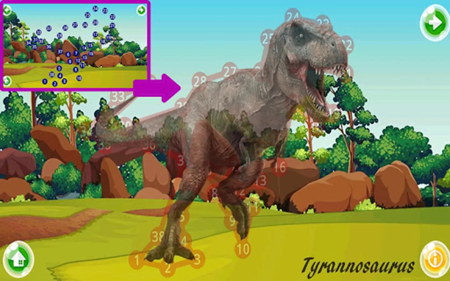 This game is designed for the little ones in the house to entertain themselves by connect the dots and discovering the dinosaurs that are hidden behind the puzzle.
