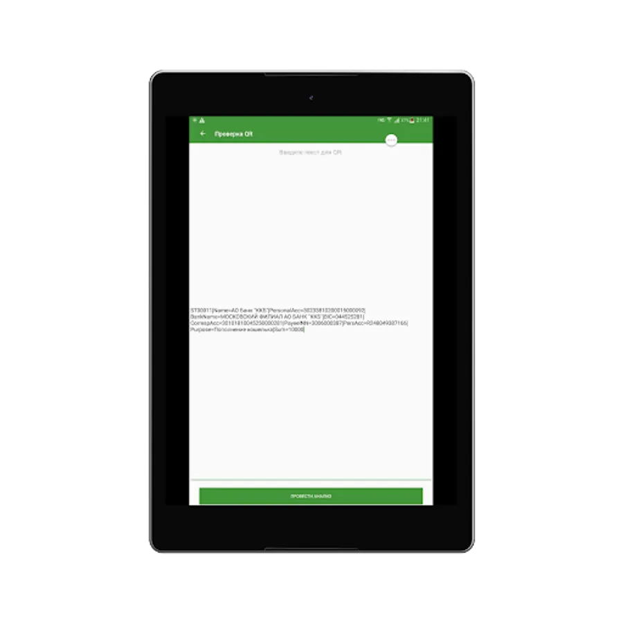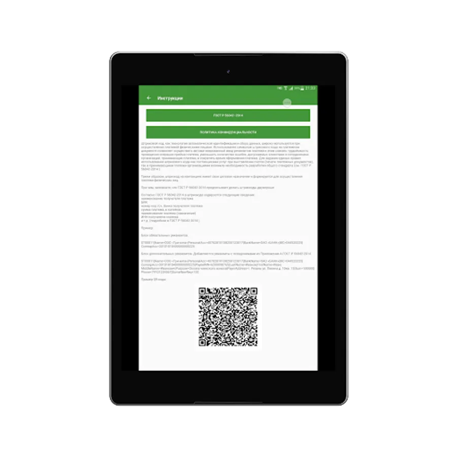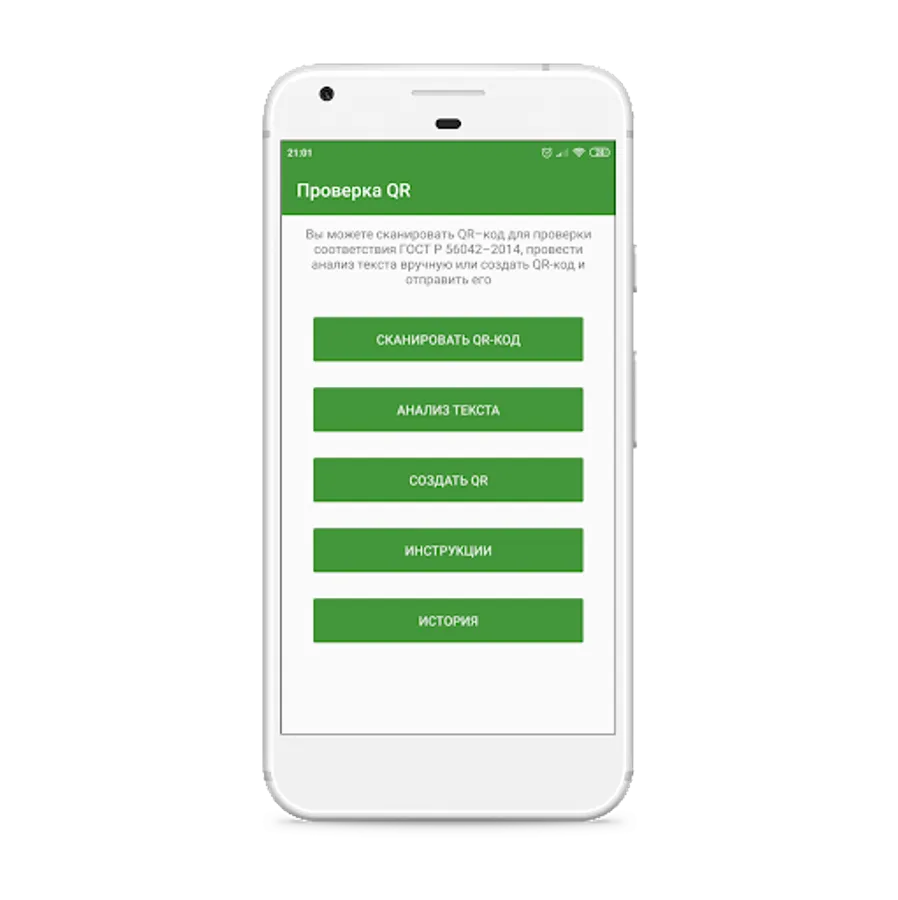 QR scanner GOST R 56042–2014 is an application that allows you to scan the QR code to verify compliance with GOST R 56042–2014 "Financial Transaction Standards. Two-dimensional bar code symbols for making payments to individuals", carry out text analysis manually or create a QR code and send him.
