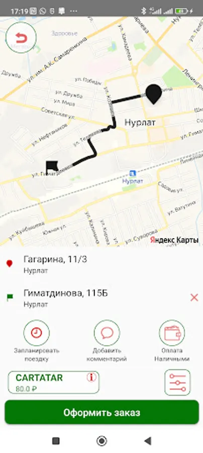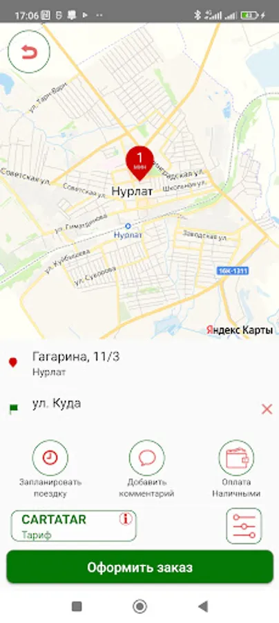 Такси Cartatar-заказ такси приложение –это современный способ заказать такси в городе Нурлат без звонка оператору. Всего пару кликов по экрану и вы назначили машину в данную точку.