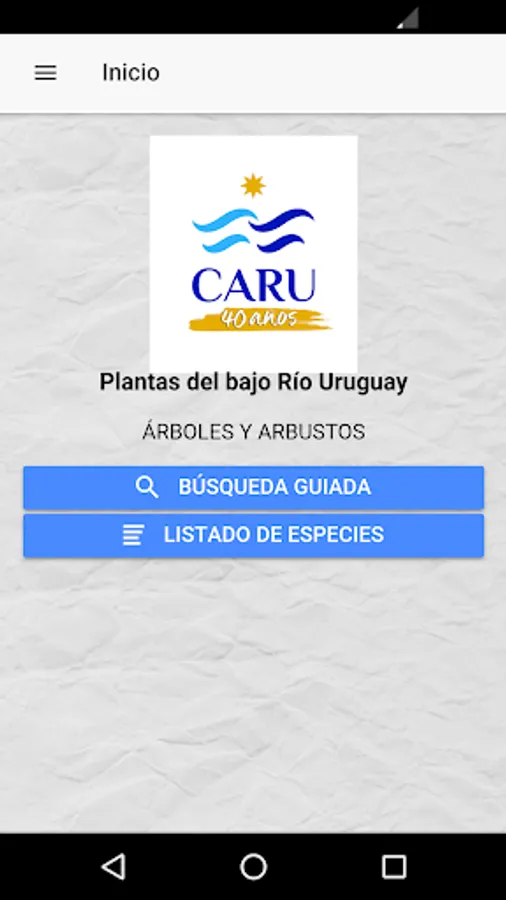 Application developed by the Administrative Commission of the Uruguay River (CARU) for the purpose of providing educational tools for environmental education in the region. It consists of a catalog with guided searches for the determination of frequent woody species in natural environments of the Uruguay River.