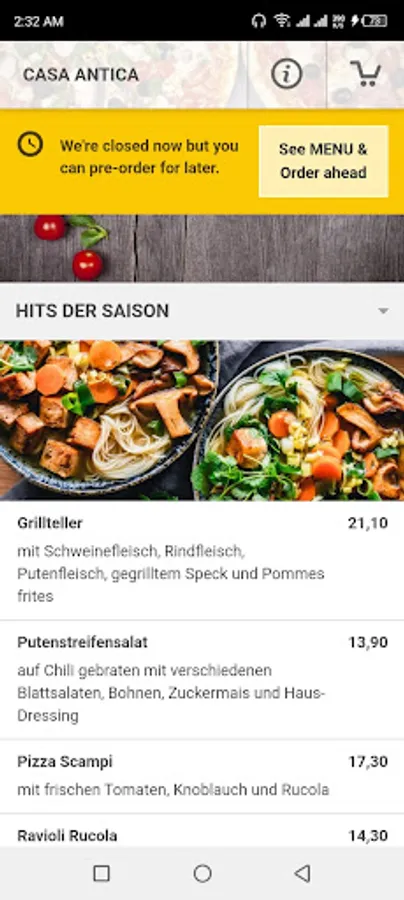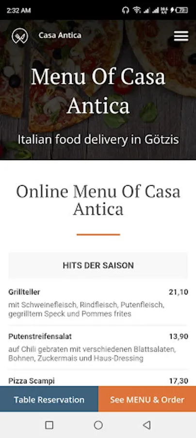 At Casa Antica we offer meals of excellent quality and invite you to try our delicious food.