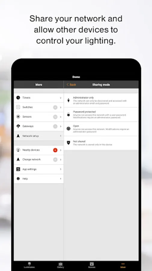 If you have several users and devices using the same network, any changes made with one device will be automatically adopted across all other devices using Casambi’s cloud service.