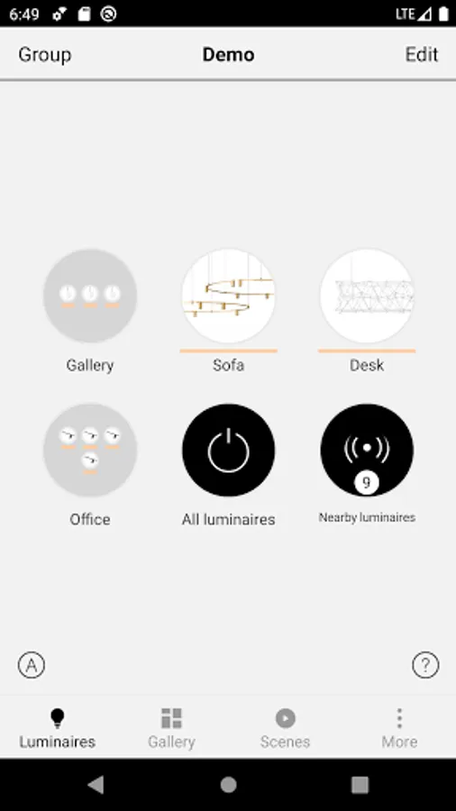 You can assign luminaires to groups and control them simultaneously - turn on, off, dim - create your own scenario!