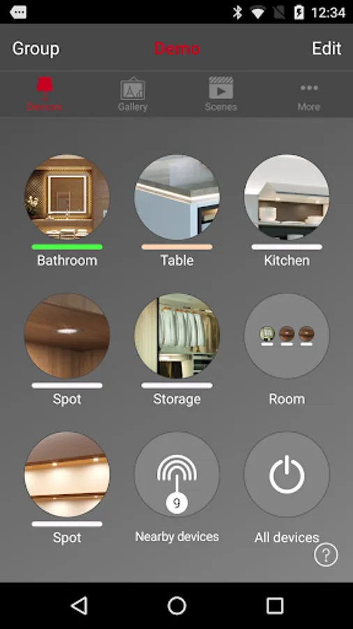 With the Gallery, the Häfele Connect app provides intuitive light control of the highest quality. Take a photo of your rooms, mark the lights in the photo and control the room’s atmosphere directly in the photo.