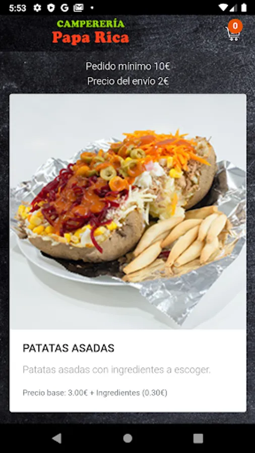 PapaRica Almuñécar, application for food orders to take away or home delivery. (Service only available in Almuñécar, Granada)