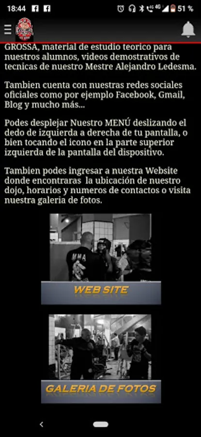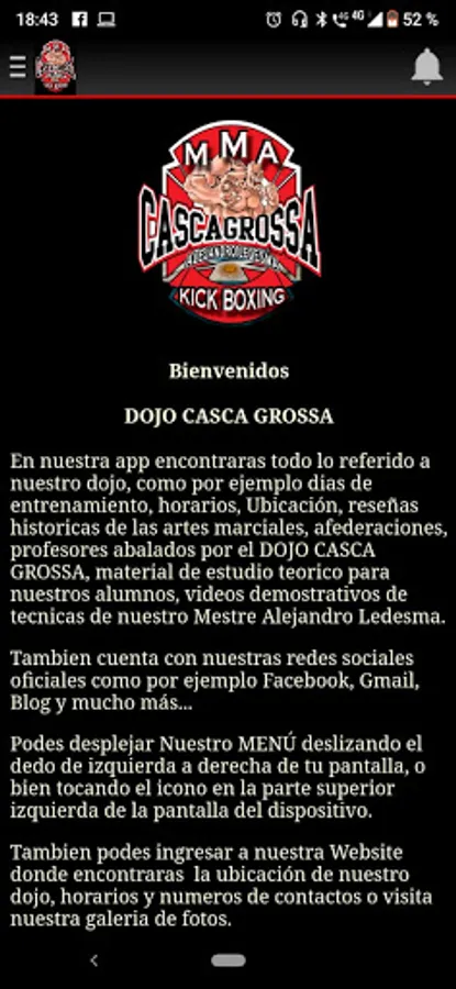 The CASCA GROSSA DOJO app, you will find our activities and schedules, contacts, teachers, official Website, Facebook, Instagram, Photo Gallery, location, sponsors, Who endorse us, Affiliate Dojos and more ...