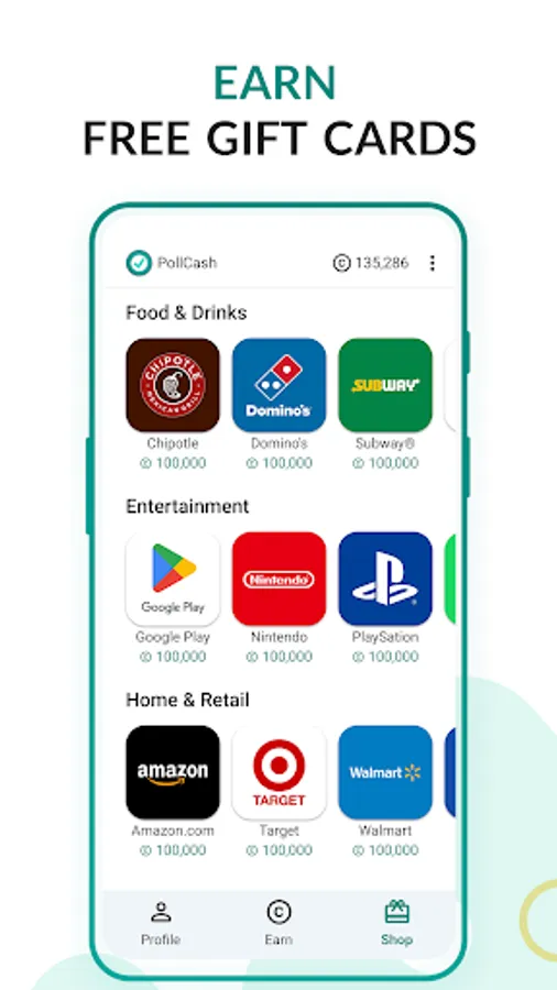 Poll Cash offers instant cashouts to the best gift card cashout options, including Amazon, Google Play, Starbucks, Target, Uber, Walmart and Xbox.
