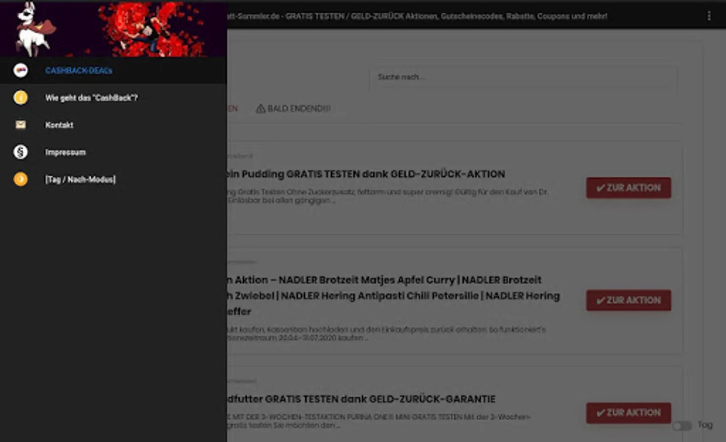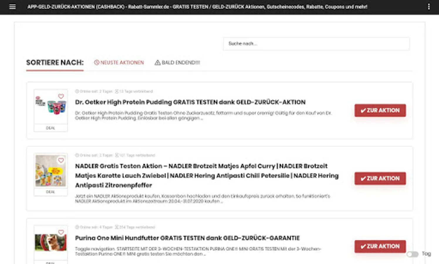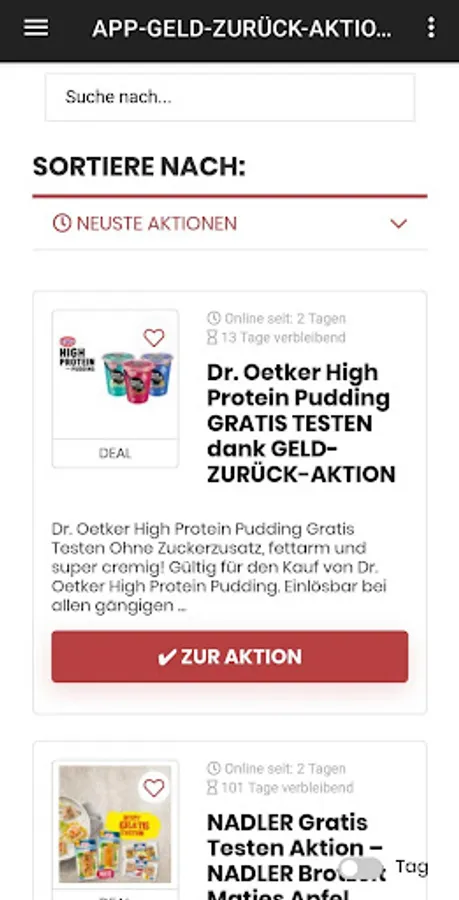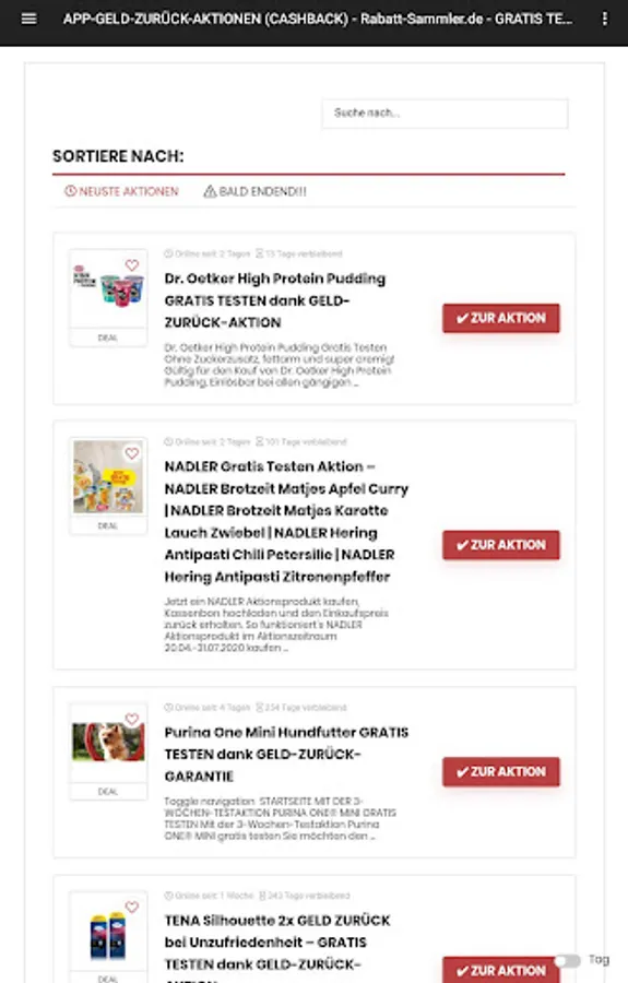 With the help of our app you will find the latest CashBack (money back) & FREE TEST campaigns, structured and sorted.