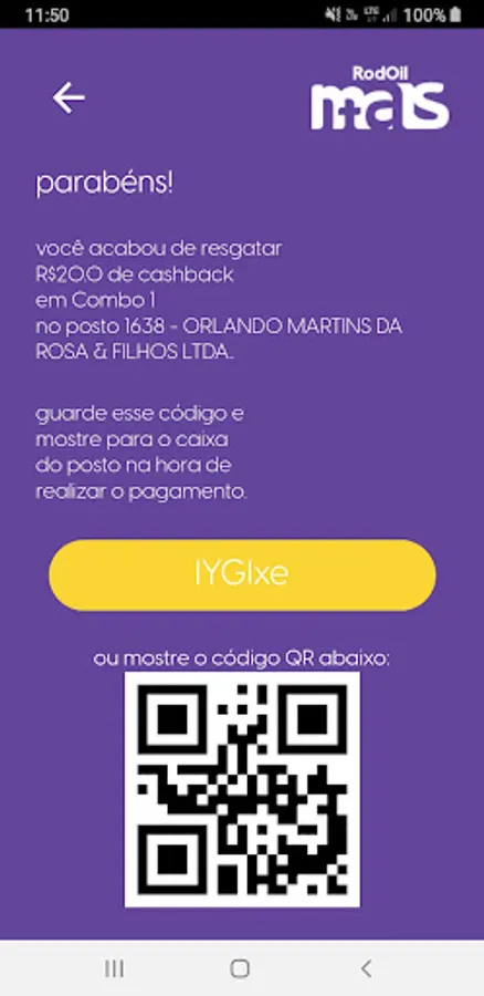 - Accumulation of cashback by reading the QR code present on the supply invoice (remember to include your CPF in the invoice!)