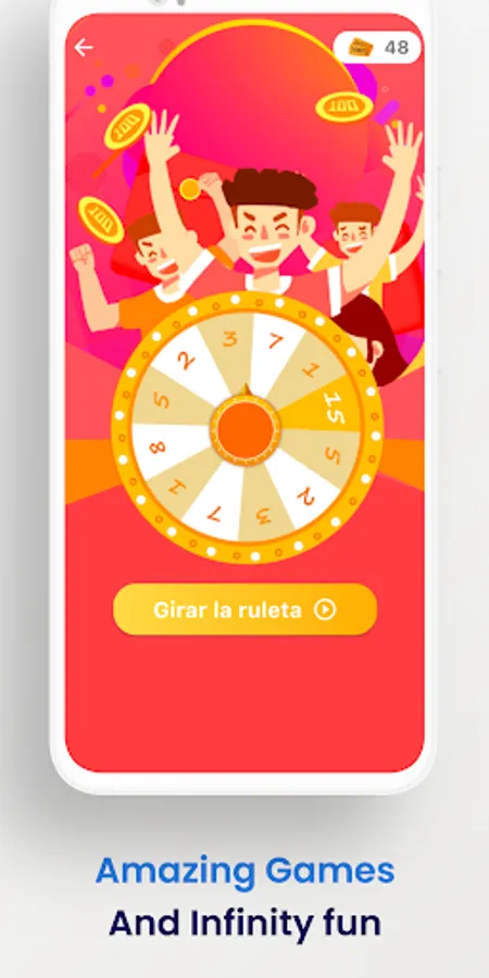 - Play games like Lucky Cards, Wheel of Fortune and more!