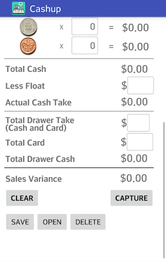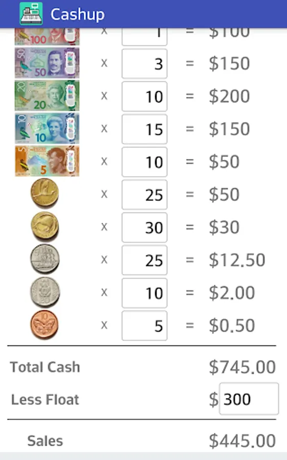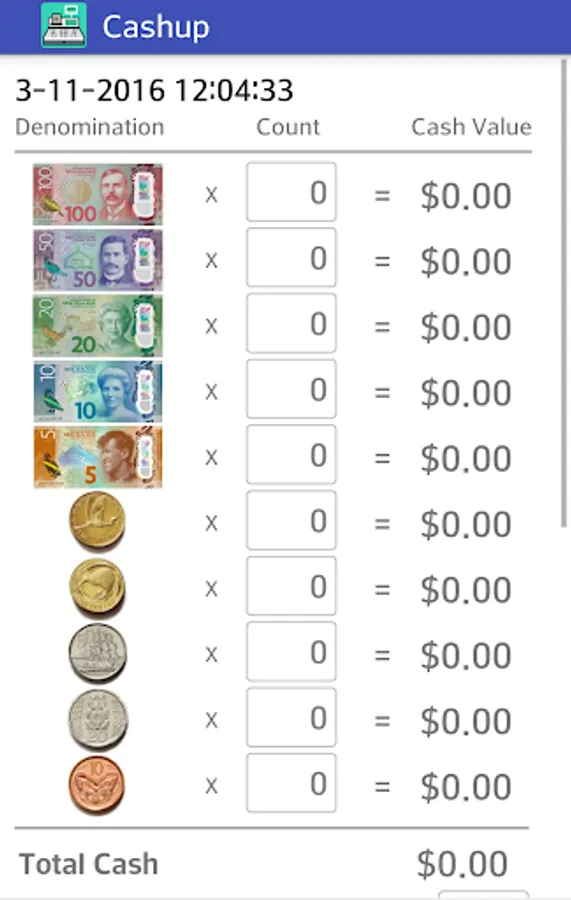 Cash up, Close a shop, Finish a shop, Calculate money, Calculation money.