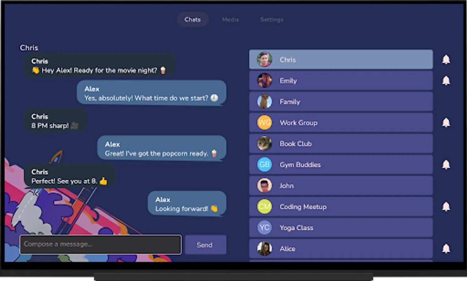 With Tevegram : Telegram for TV, multitasking becomes a breeze. Whether you're engrossed in movies, relishing some music, or browsing through movies content from your conversations, Tevegram: Telegram for TV, ensures a smooth, integrated experience. Awaiting a group movies night or a gaming marathon with friends? Keep up with the action with real-time notifications.