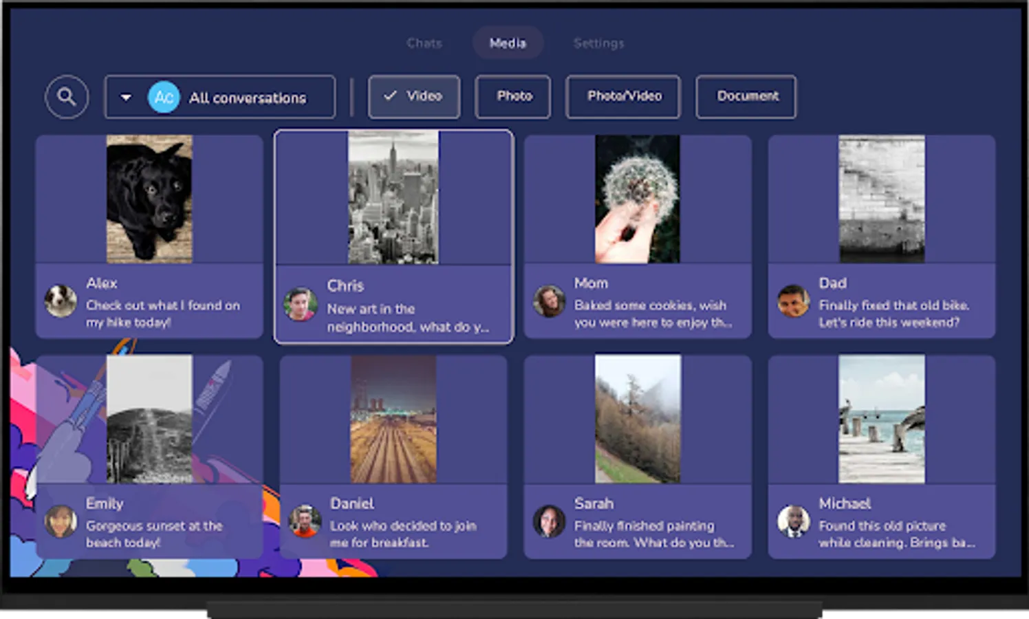 With Tevegram, watch movies, chat with friends, family, and colleagues directly from your TV. Don't miss a beat of your favourite shows or movies as Tevegram's unique overlay notifications deliver important updates and messages without disrupting your viewing experience.
