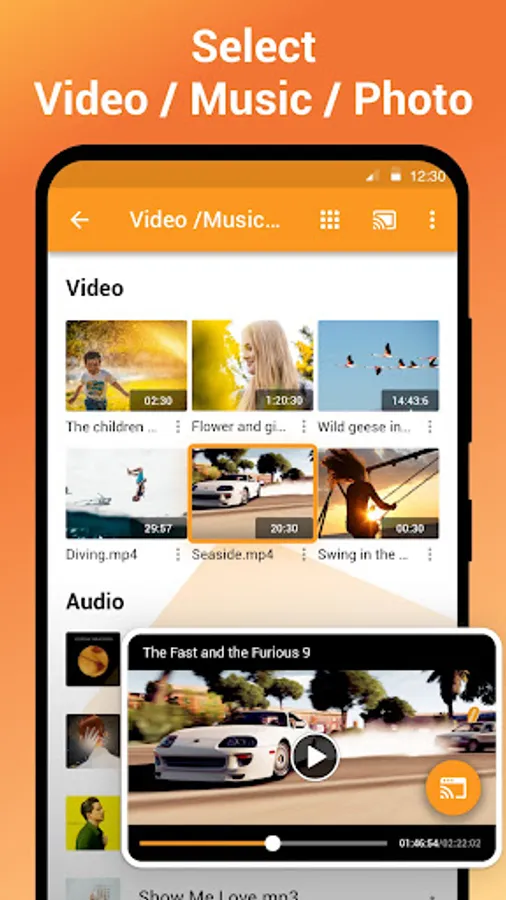 Cast local video, photo slideshow, and music from phone to Chromecast easily and fast. Cast to Chromecast, Fire TV and other smart TVs with no feature limited. Cast web video to Chromecast, and enjoy the best experience of watching videos.