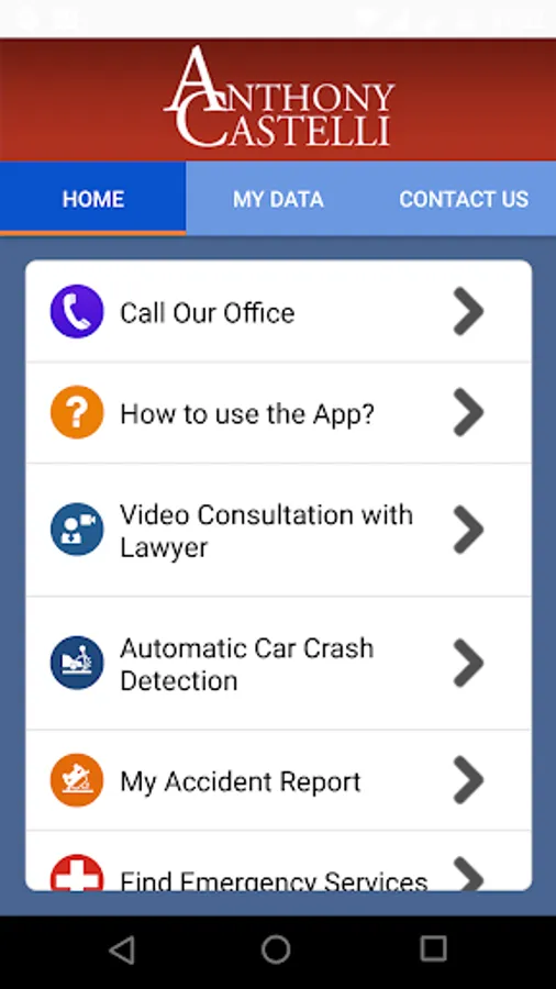 Presenting the Law Office of Anthony Castelli App, putting us at your fingertip when you need us the most after an auto accident. With the Anthony Castelli injury attorney App you can: