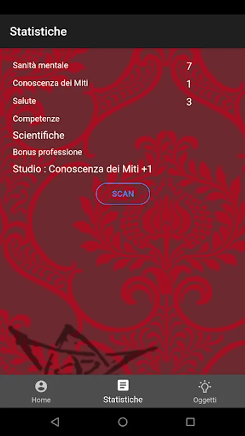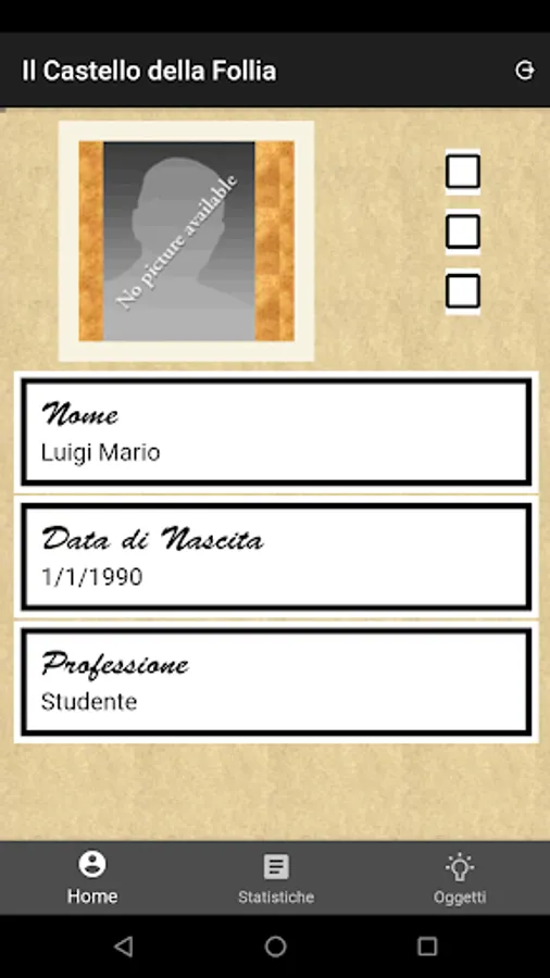 App for displaying the players' card of the LARP "The Castle of Follia" RPG, based on the works of H.P.Lovecraft.