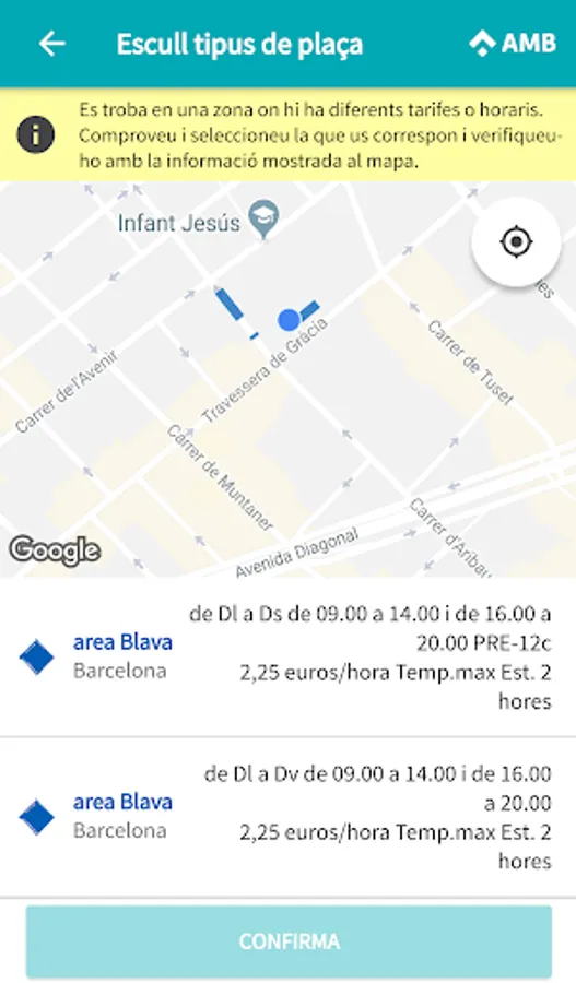 - The app will show you the start date and time, the rates, the schedules and the maximum parking time.