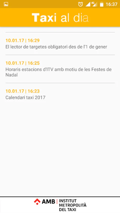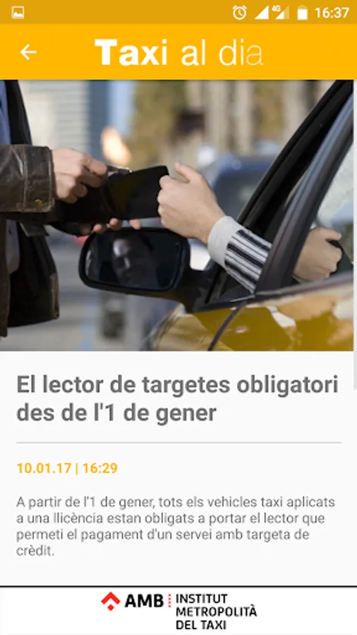 The application Taxi is a free day for the communication of notifications to taxi drivers in the metropolitan area of Barcelona, by the Metropolitan Taxi Institute (IMET).