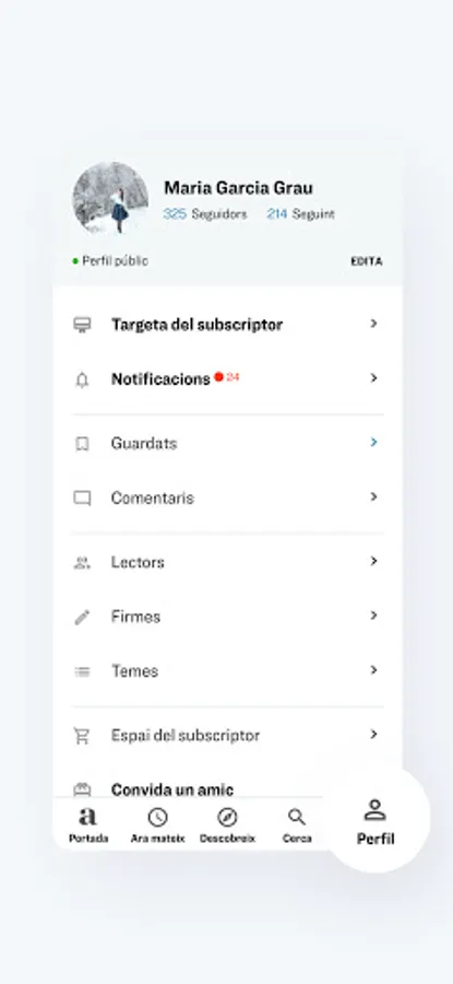 - Profile: the subscriber and registered reader’s own section, with all their informative activity.