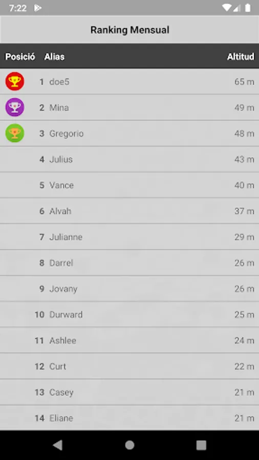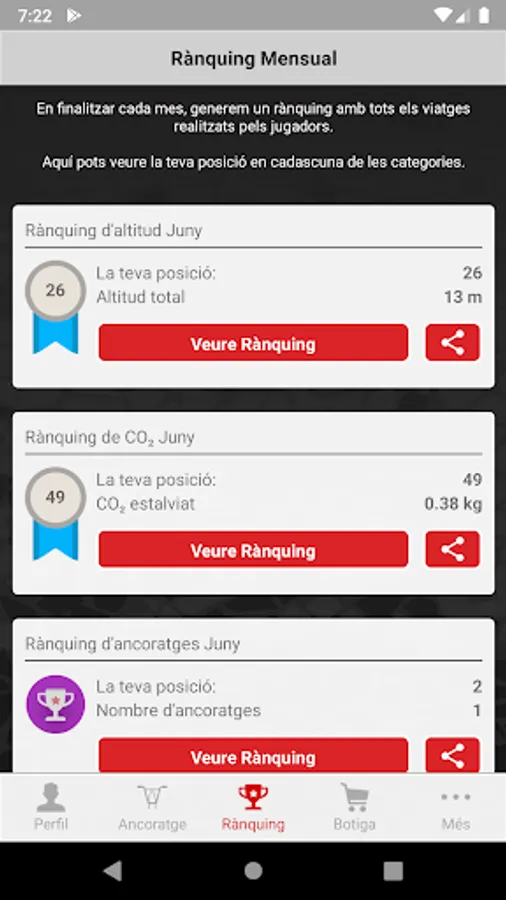 - Consult the monthly rankings in which all users of the Bicing Game compete.