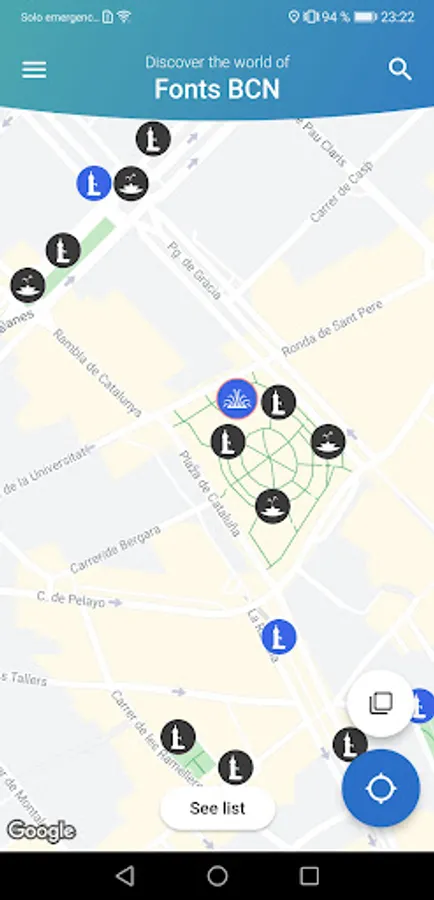 The Fonts Bcn application gives you access to information on Barcelona's fountains, for finding out the nearest fountains to you and how to reach them, consulting the map and obtaining basic information on all the city's drinking fountains.