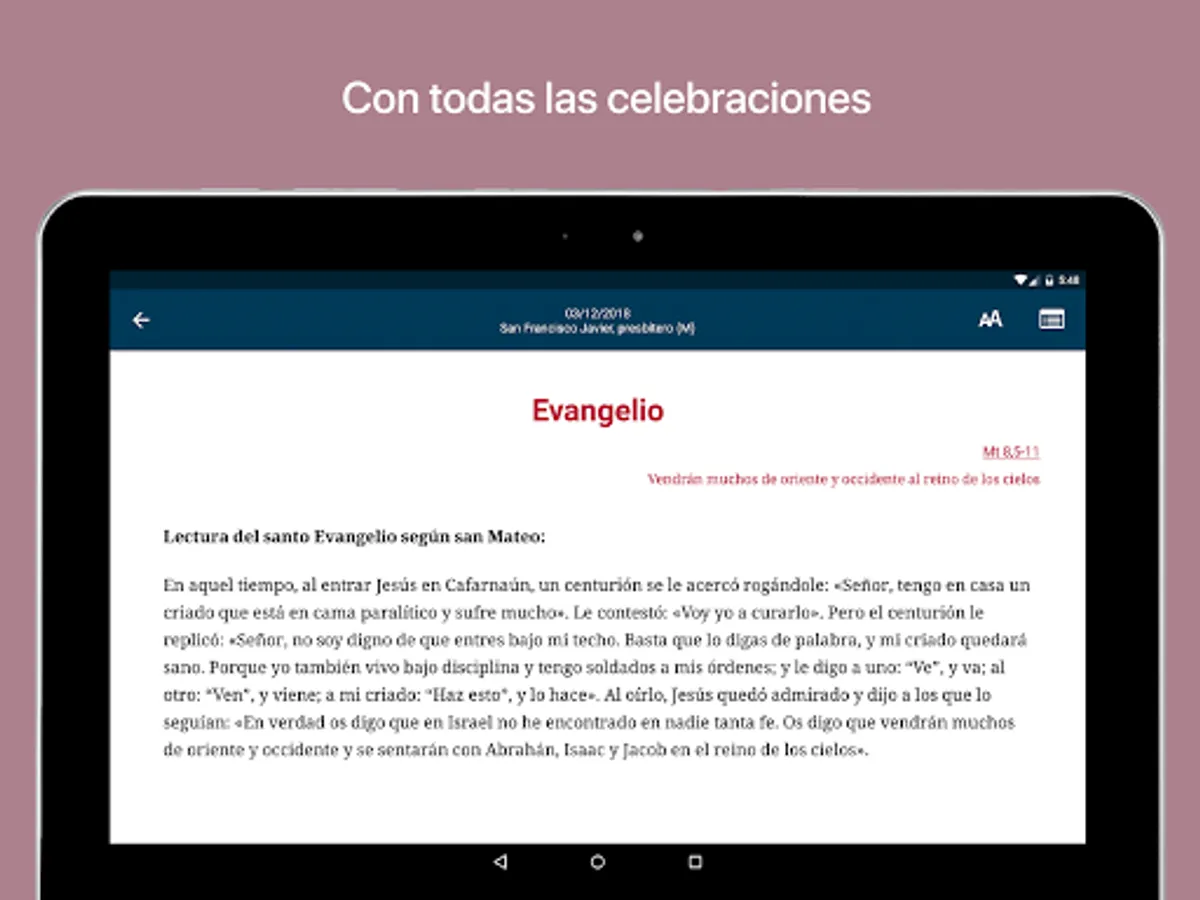 "The Mass of Every Day" allows you to follow the mass of all the days of the year wherever you are. It includes the liturgical texts for all the Eucharistic celebrations of the Spanish missal, both those of a general scope and those of each diocese and those of the main populations. It also provides commentary on biblical texts that will facilitate the preparation of homilies or personal meditation.
