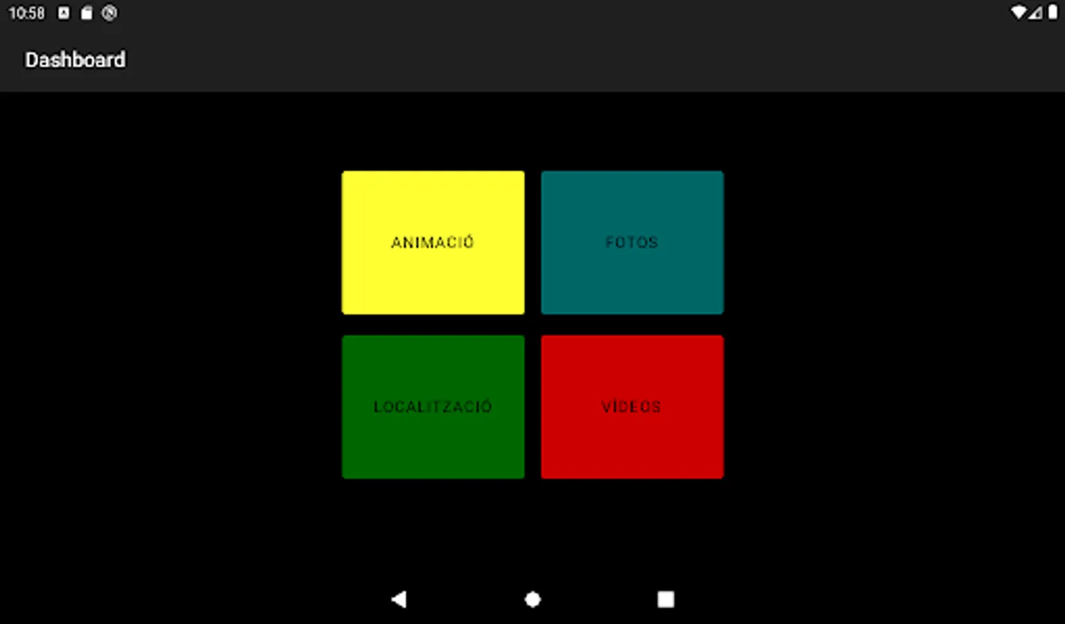 It is a multimedia application with a main Dashboard to access the following screens: