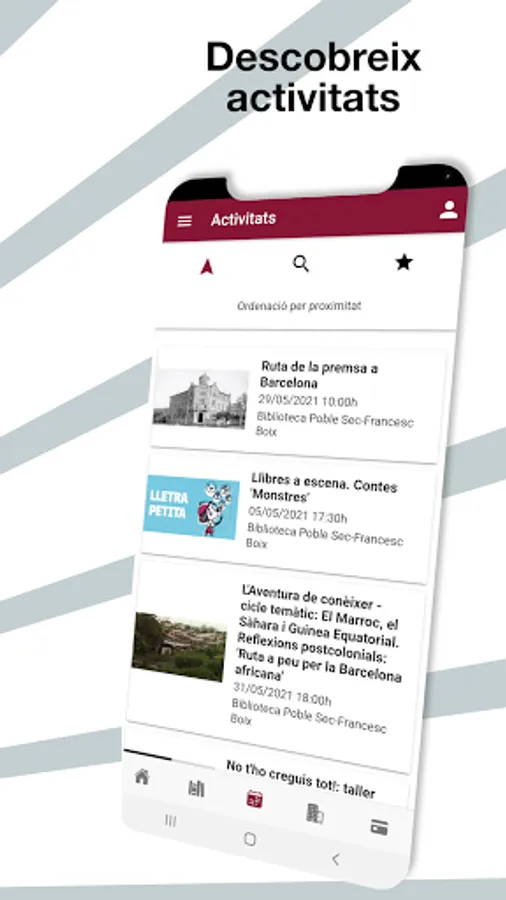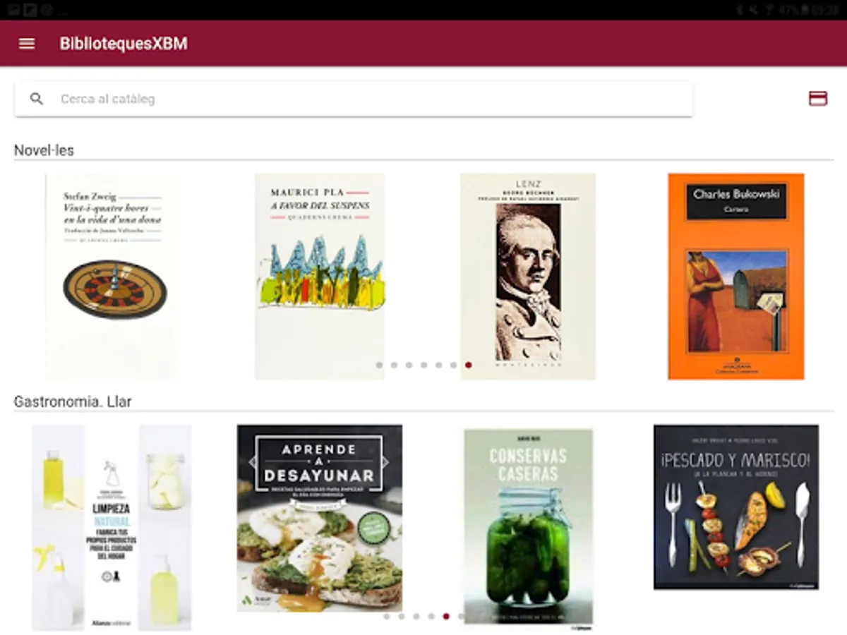 BibliotequesXBM is the application developed by the Diputació de Barcelona that allows you to save your library card and that of your family on your mobile, and access to the library services. You can also check the catalog and your personal space, where you will be able to see what documents you have in loan, renew documents, make reservations or cancel them. It also allows you to book Internet sessions in libraries.