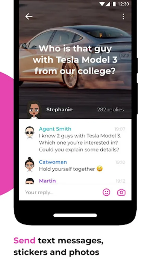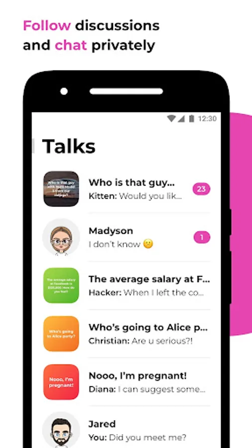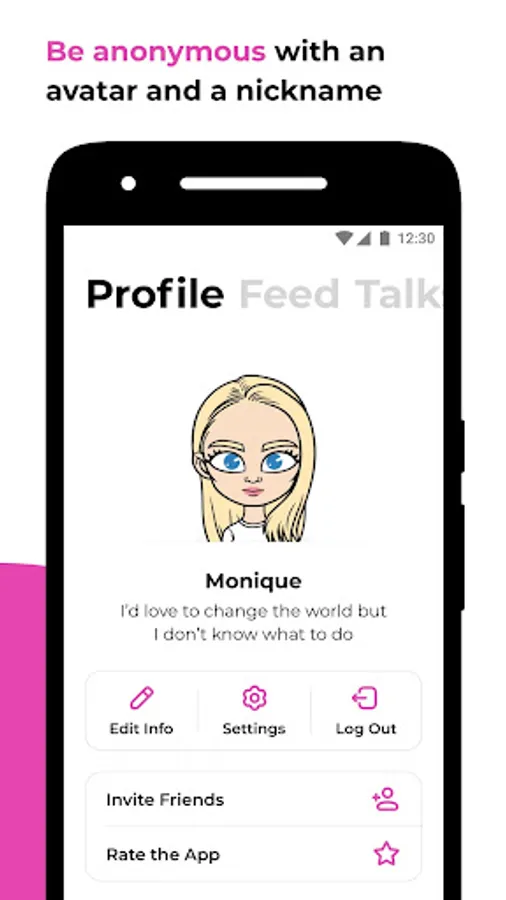 Chat with friends without knowing who is who. Personalities are hidden beneath cartoon avatars and pseudonyms, data is encrypted.