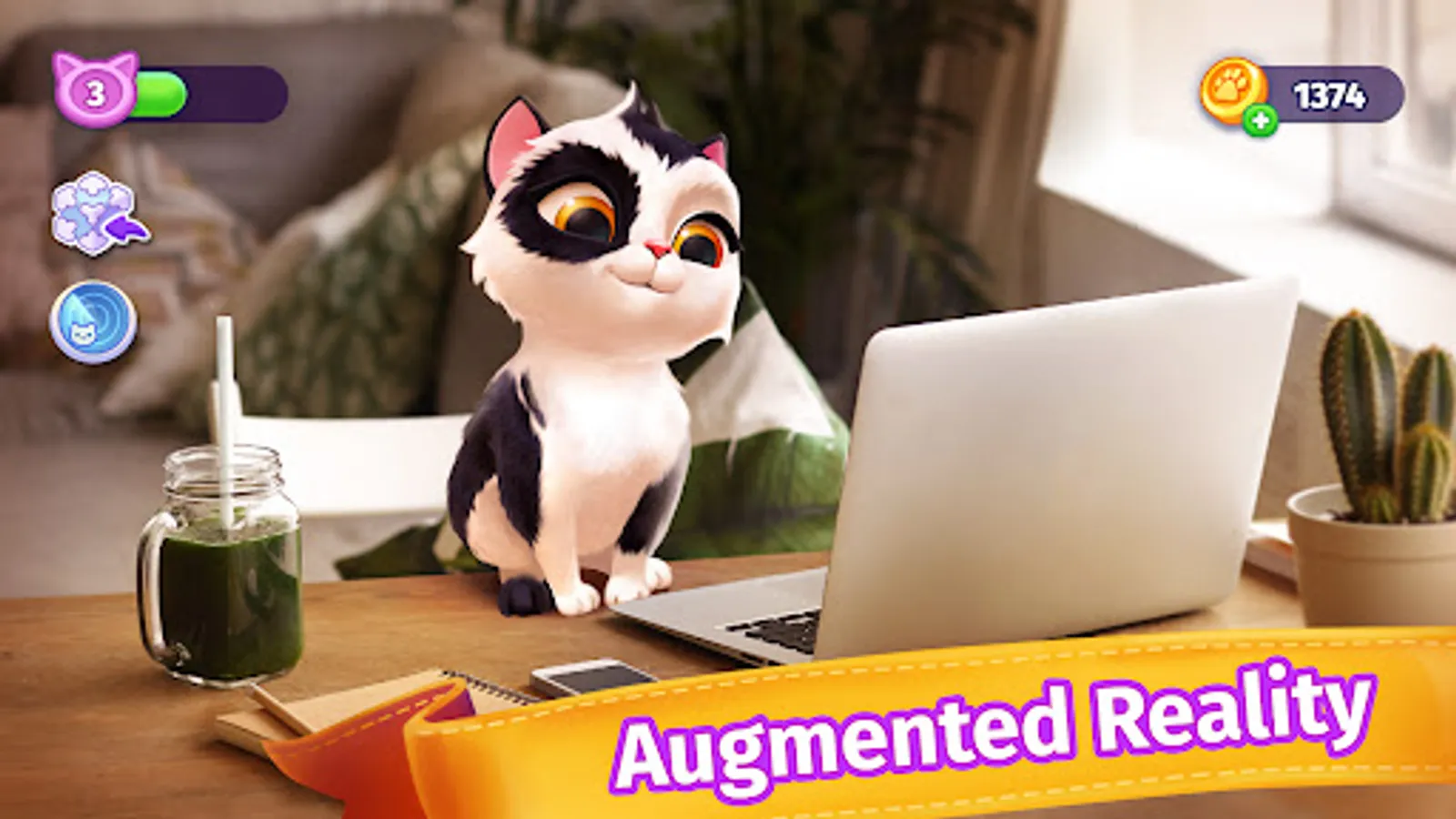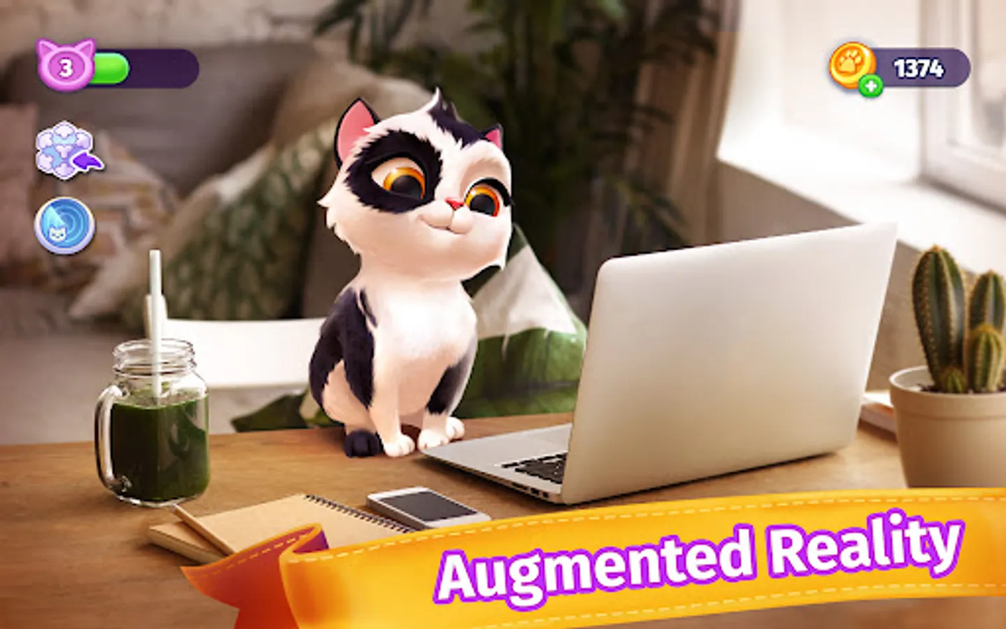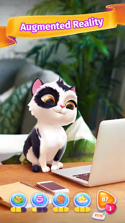🎮 AUGMENTED REALITY. Use your smartphone camera and your virtual cat will appear right in your house or wherever you want. Cat games for girls and boys can do it now. You will love it.
