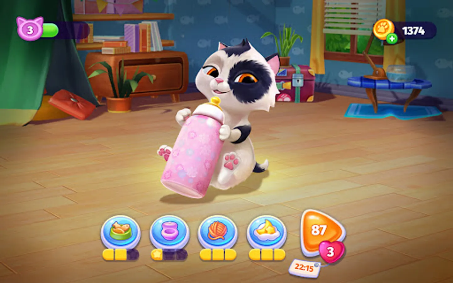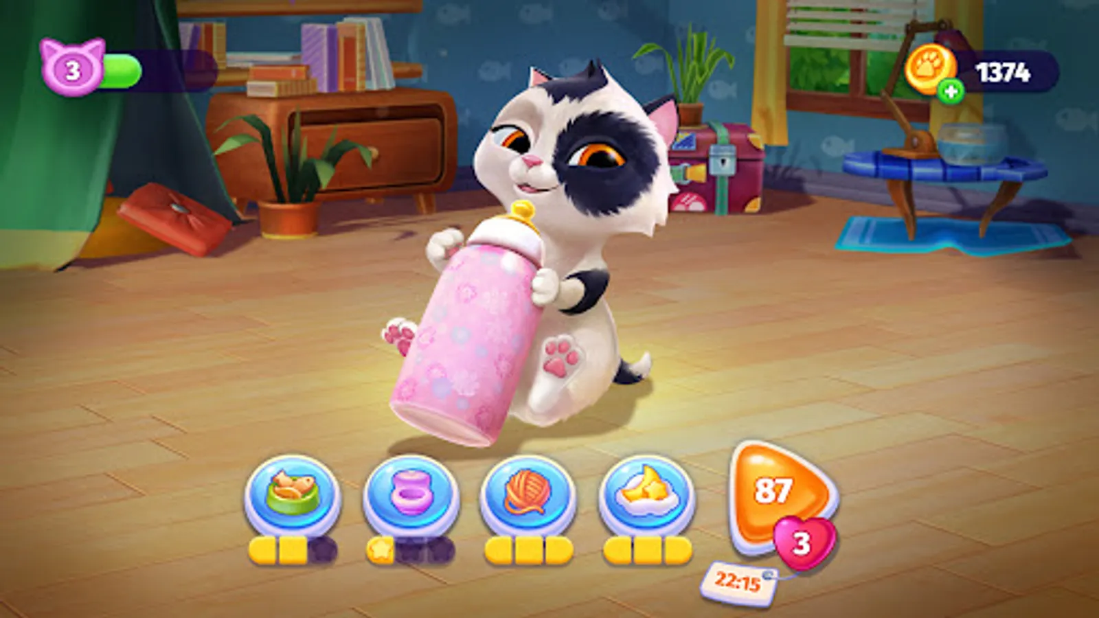 🐈 MORE FUN. While your virtual pet is asleep or occupied with some important cat business you can set new records in an exciting animal Match 3 games or mini games. Challenge yourself and set your own records.