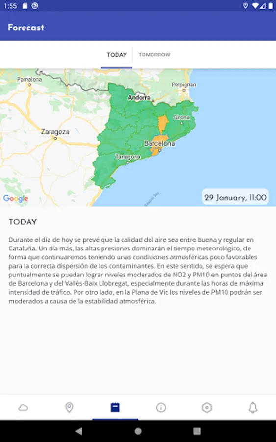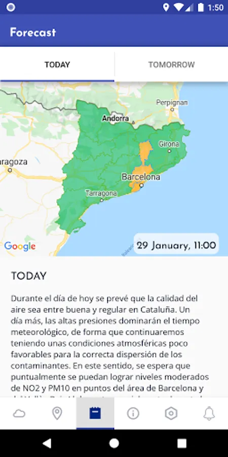 - Receive notifications about the activation of pollution episodes with the information you are interested in filtering by area and per contaminant.