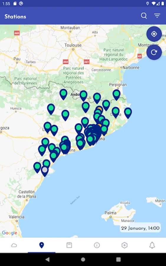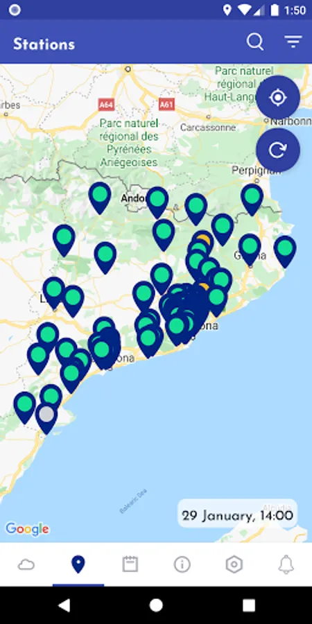 - Display the map with the measurement stations of the Aire Quality and Monitoring Network of Catalonia.