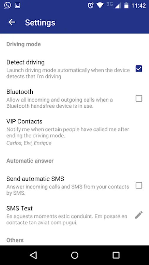 · It answers with an SMS to incoming calls and SMS from your contacts while you are driving.